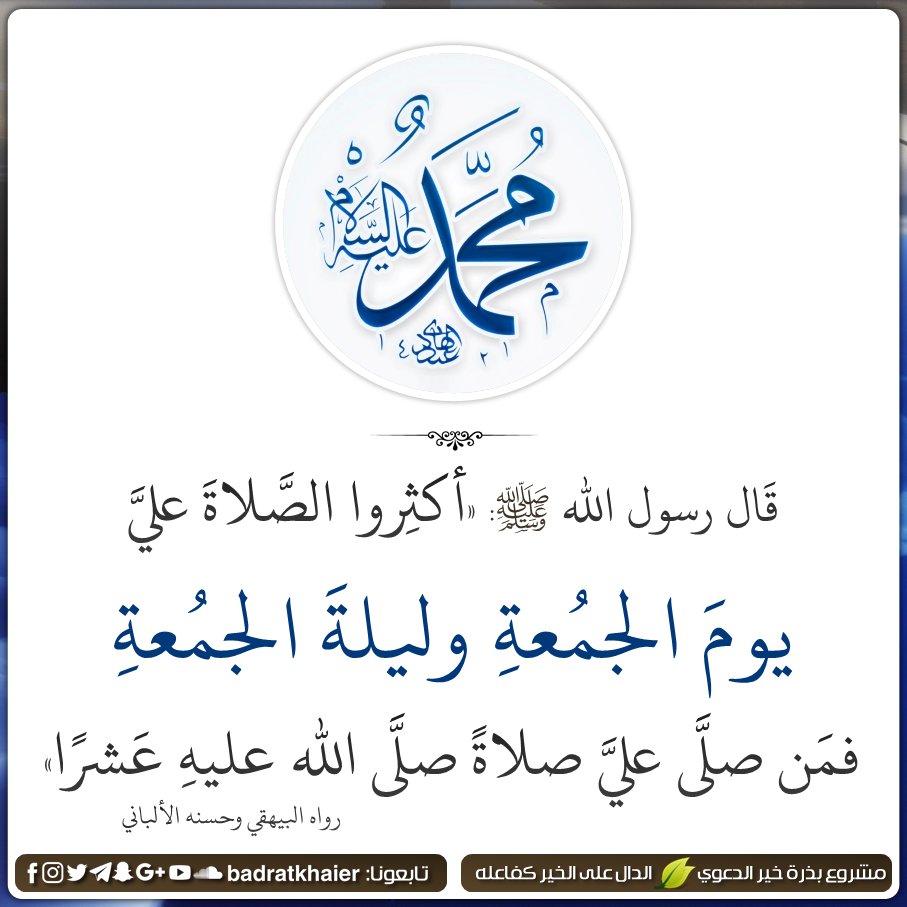 Abdulmalek Alshelali Sur Twitter قال صل الله عليه وسلم اكثروا من الصلاة علي ليلة الجمعة ويوم الجمعة فإن صلاتكم معروضة علي إ ن الل ه و م ل ائ ك ت ه ي ص ل ون ع ل ى الن ب ي ي ا أ ي ه ا ال ذ ين