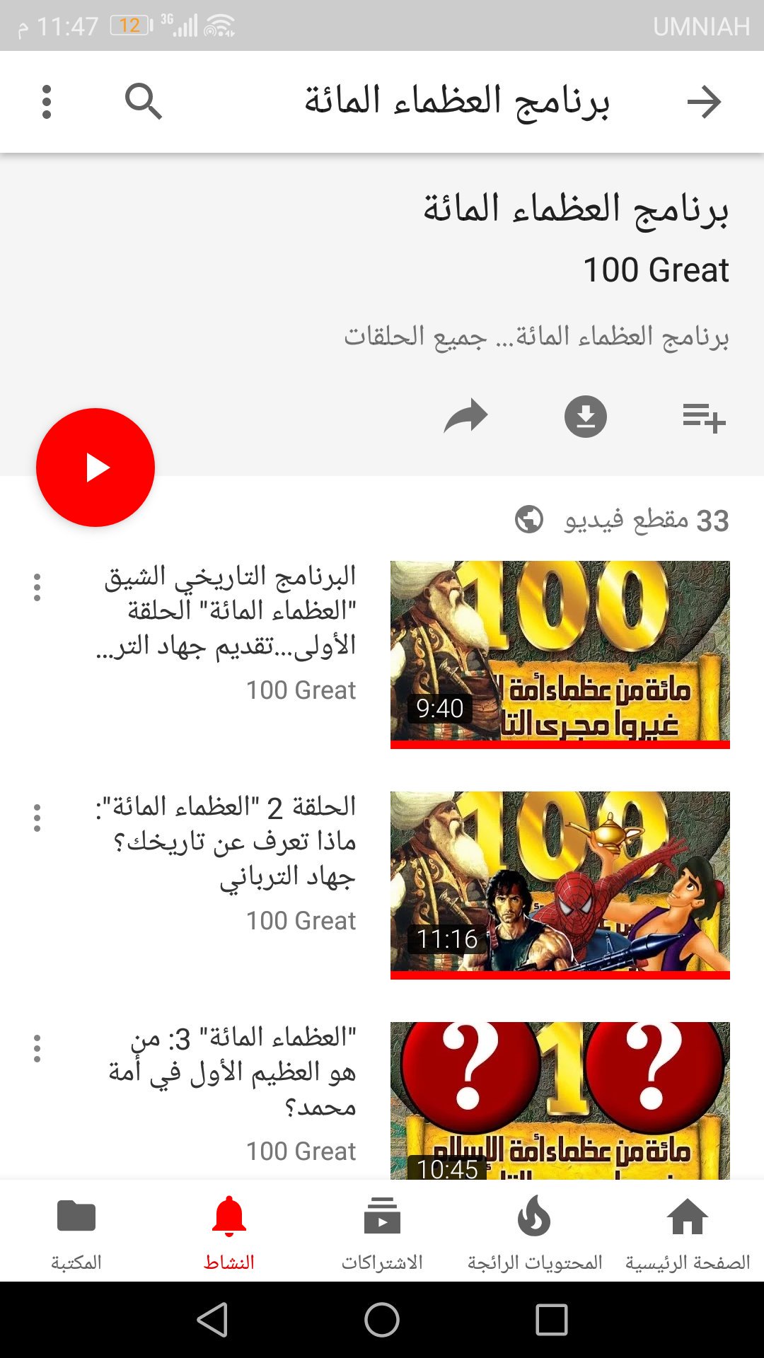 برنامج العظماء المائة Youtube