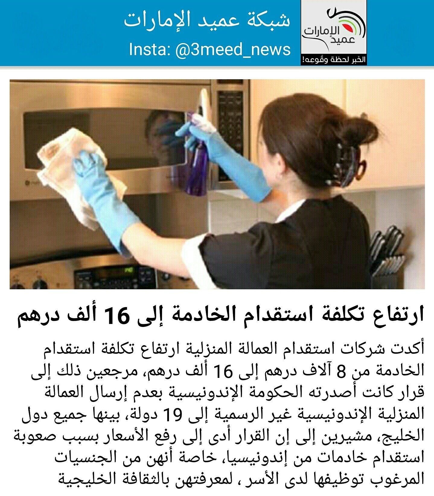 شبكة عميد الإمارات A Twitter أكدت شركات استقدام العمالة المنزلية ارتفاع تكلفة استقدام الخادمة من 8 آلاف درهم إلى 16 ألف درهم مرجعين ذلك إلى Https T Co 6dprjwxy6j