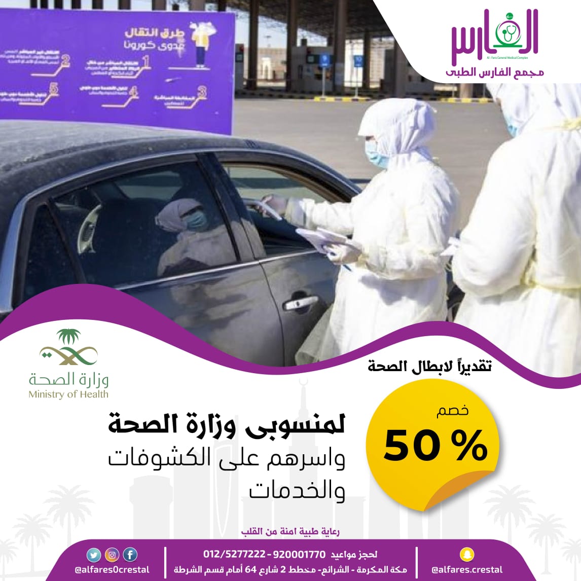 O Xrhsths غرفة مكة المكرمة Sto Twitter مجمع الفارس الطبي بالشرائع خصم 50 لمنسوبي وزارة الصحة وأسرهم شكر ا لدعمكم شكرا أبطال الصحة أبطال الصحة
