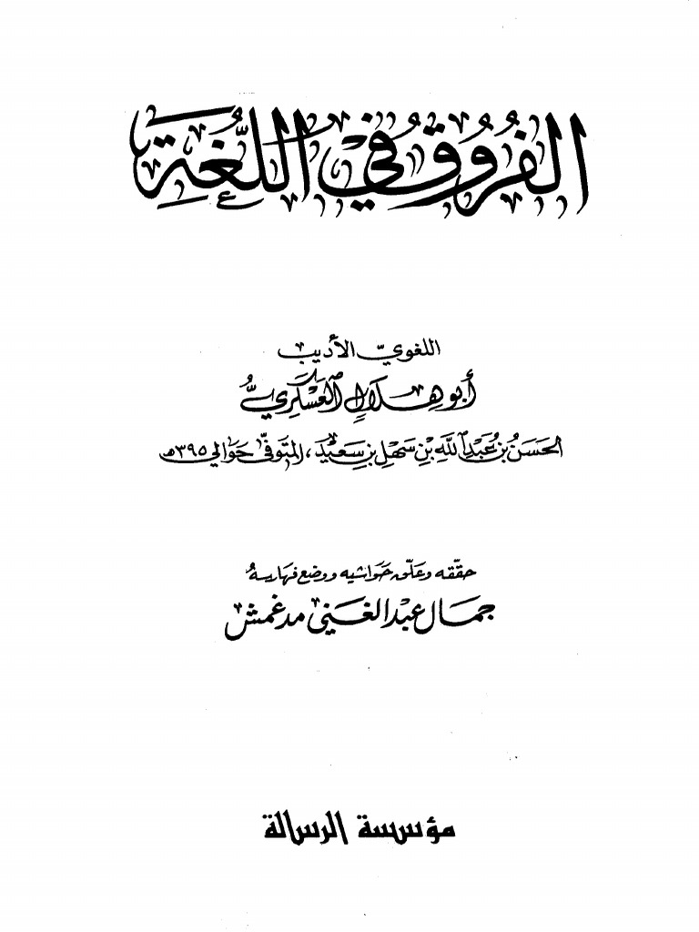الفروق في اللغة لأبي هلال العسكري ط الرسالة Pdf