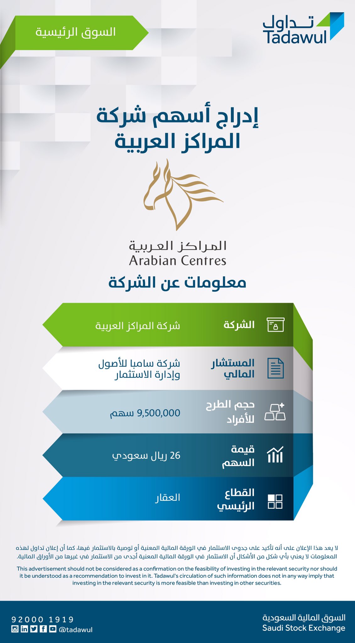 Tadawul تداول On Twitter غدا الأربعاء إدراج أسهم شركة المراكز العربية في السوق الرئيسية للمزيد من المعلومات Https T Co Itpecvt2oo