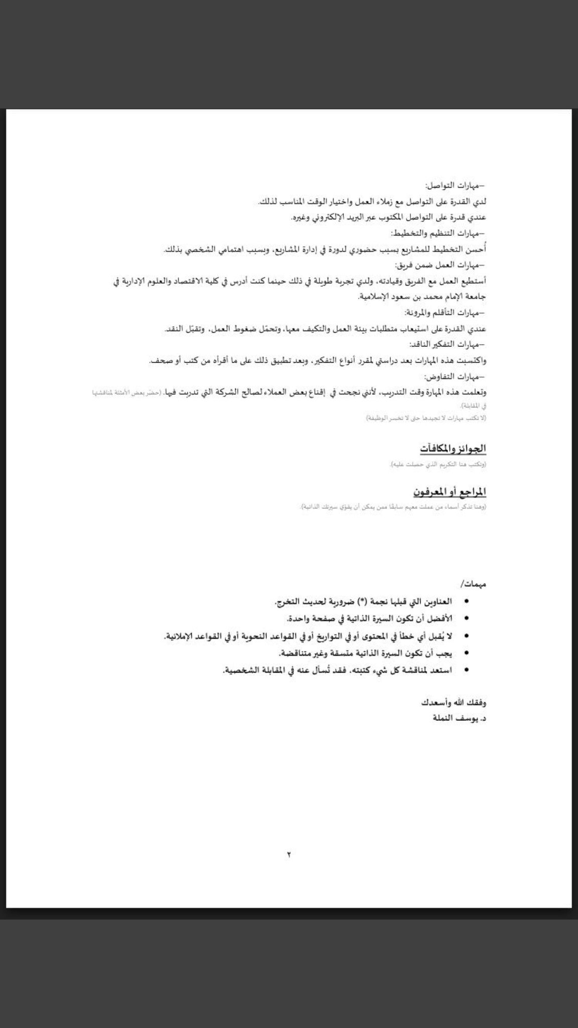 كيفية كتابة السيرة الذاتية جامعة المجمعة Majmaah University