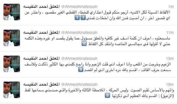 أخبار الكرة العالمية Pa Twitter إيقاف المعلق احمد النفيسه حتى إشعارا اخر بعد إساءته للهلالضد التعاون قال عن جمهور الهلال الزعيق اعتذر عبر تويتر Http T Co Nppfpzspus