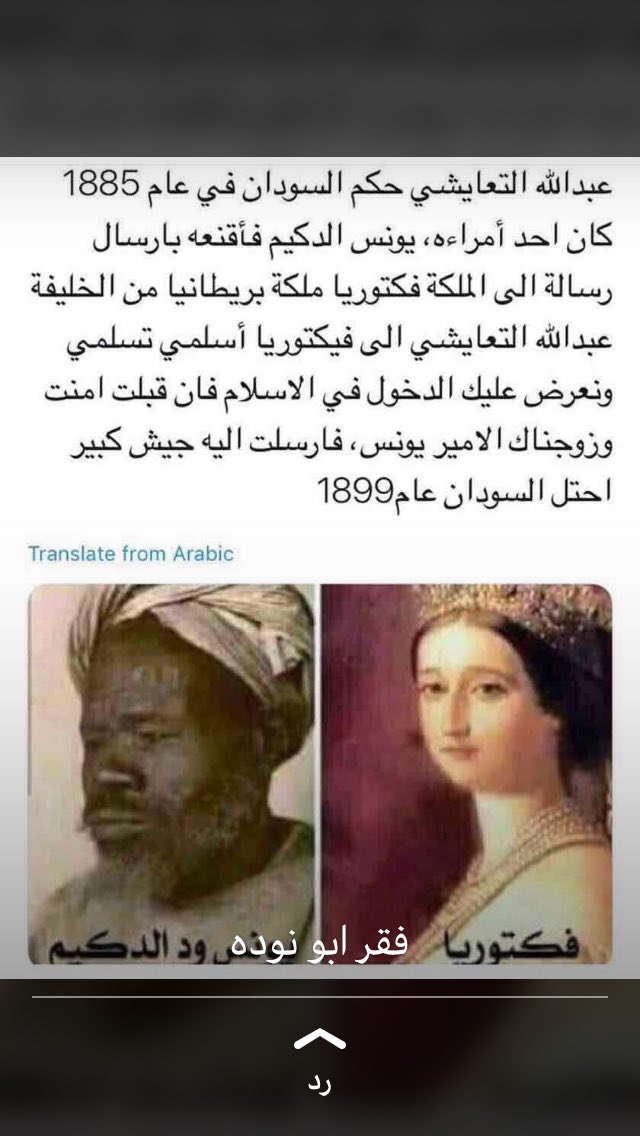 أنس القاسم On Twitter عبدالله التعايشي حكم السودان في عام 1885 كان احد أمراءه يونس الدكيم فأقنعه بارسال رسالة الى الملكة فكتوريا ملكة بريطانيا من الخليفة عبدالله التعايشي الى فيكتوريا أسلمي تسلمي