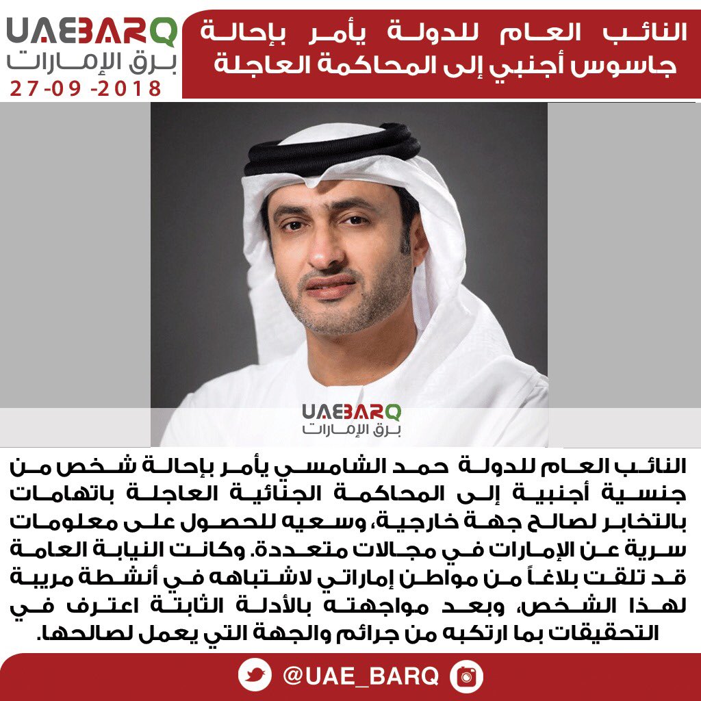 برق الإمارات On Twitter النائب العام للدولة يأمر بإحالة جاسوس أجنبي إلى المحاكمة العاجلة برق الإمارات