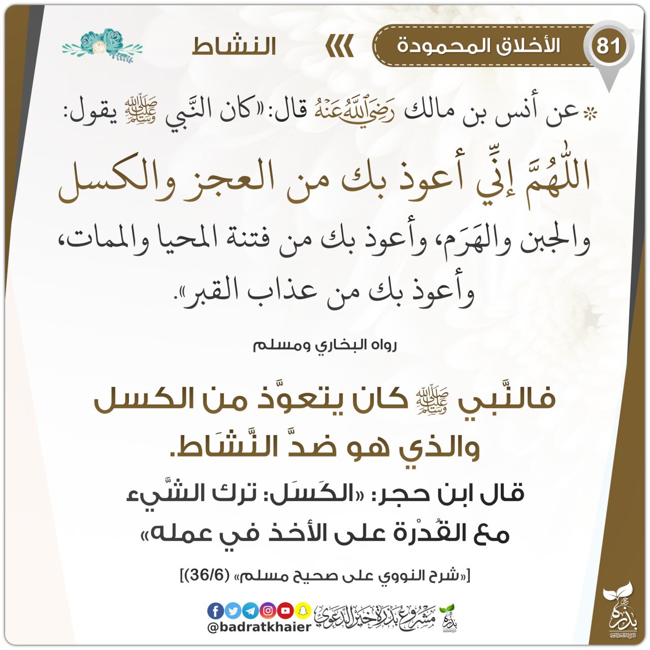 مشروع بذرة خير الدعوي On Twitter الأخلاق المحمودة مكارم الأخلاق الخلق الحسن النشاط هو أن ي خ ف الإنسان إلى الأمر وي ؤ ث ر فعله