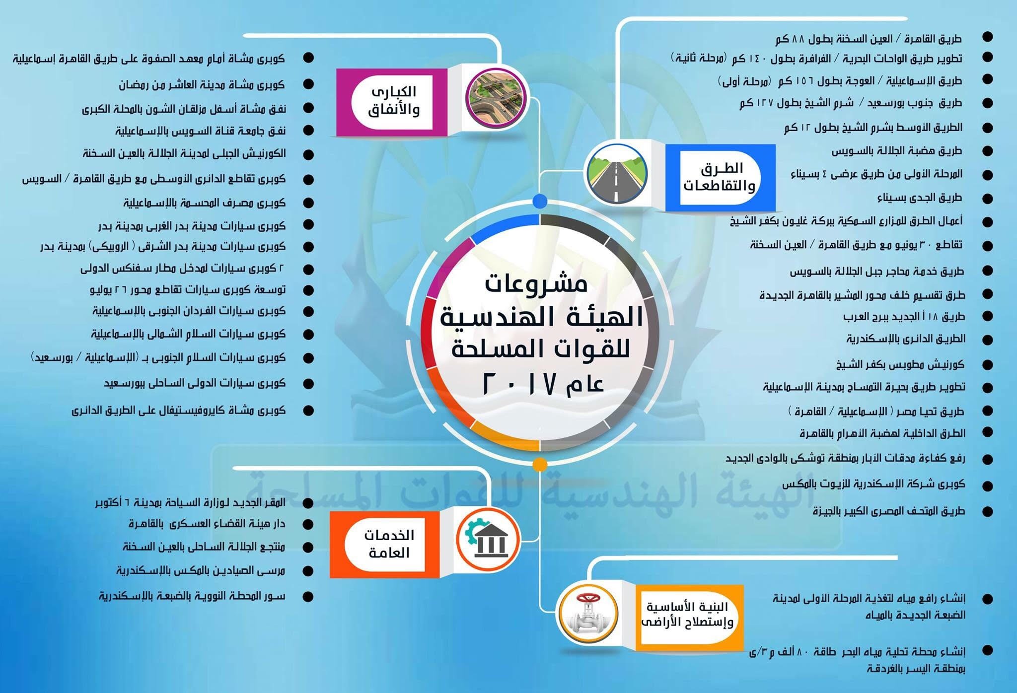 إنفوجراف مشروعات الهيئة الهندسية للقوات المسلحة خلال عام 2017 معلومات مباشر