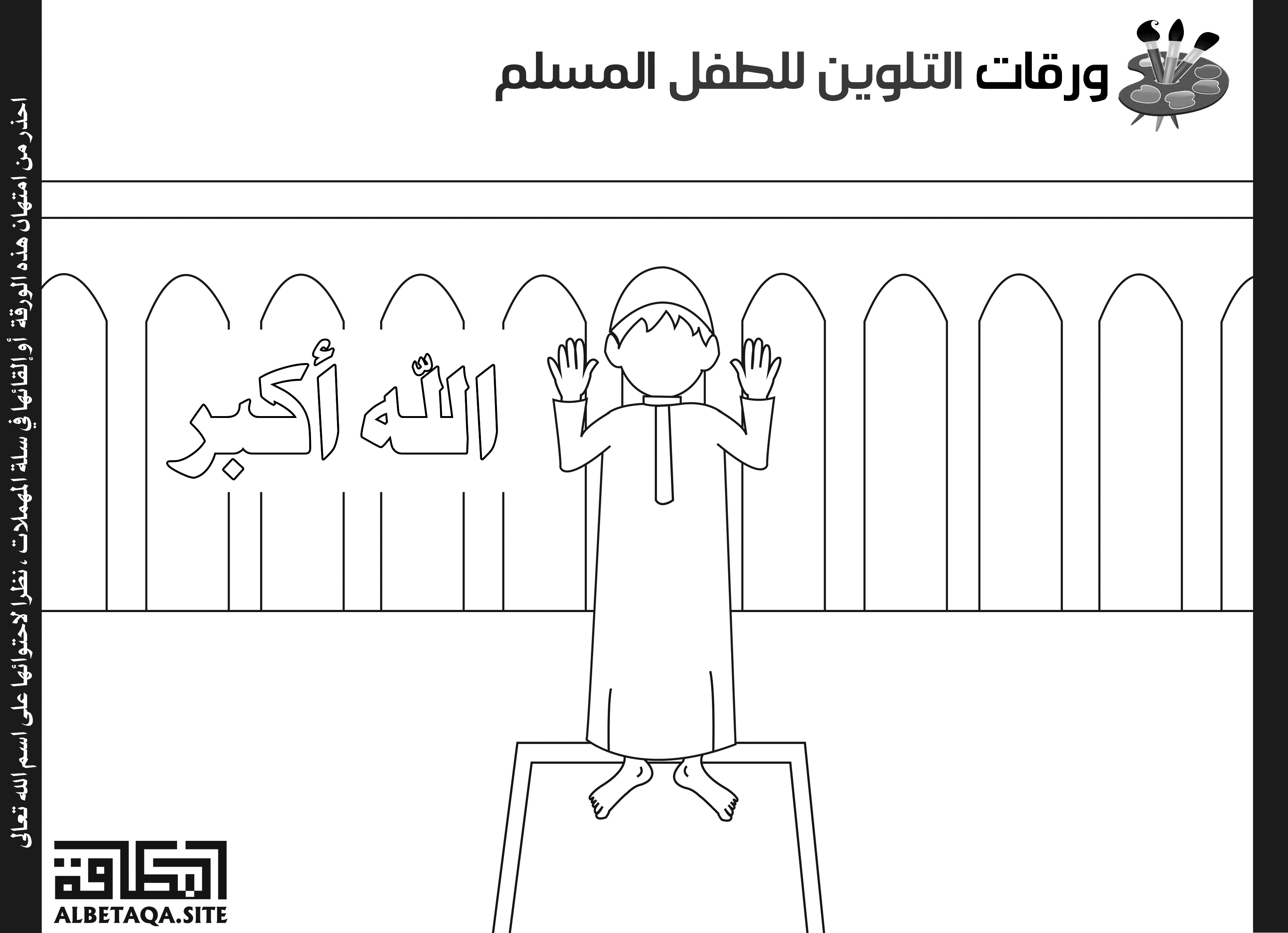ورقات التلوين للطفل المسلم الله أكبر موقع البطاقة الدعوي